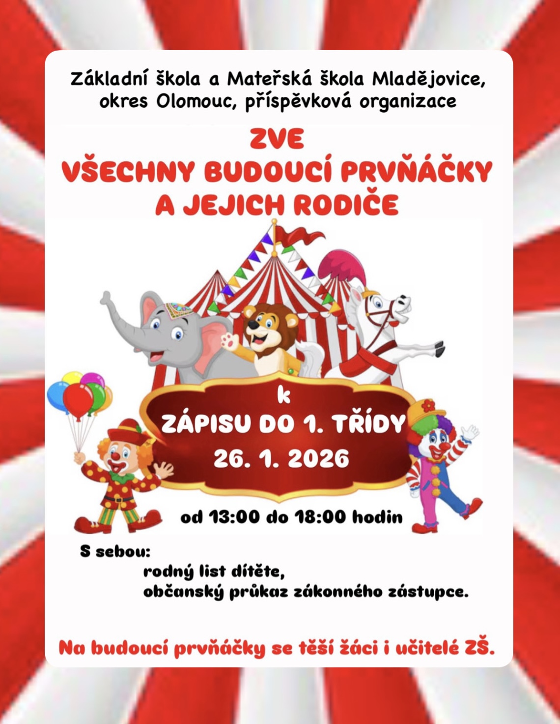Zápis do 1. třídy Základní školy 26. 1. 2026